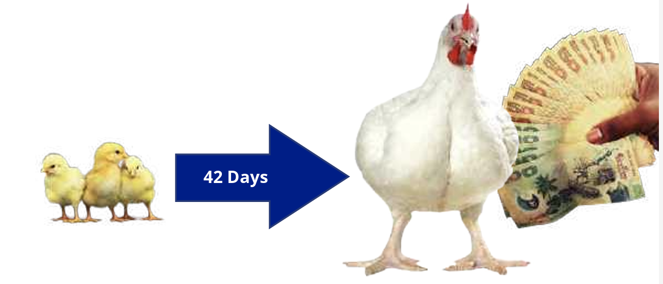 • Low FCR (Feed Conversion Rate). The amount of feed consumed per kilo of meat. The lower the FCR, the more efficient chickens are at converting feed into meat.
