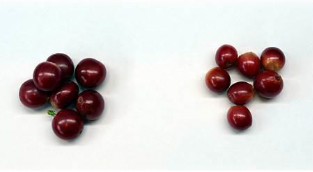 FIGURE 18: RIPE CHERRIES (LEFT) AND APPROXIMATELY 10 DAYS OFF RIPE CHERRIES (RIGHT)