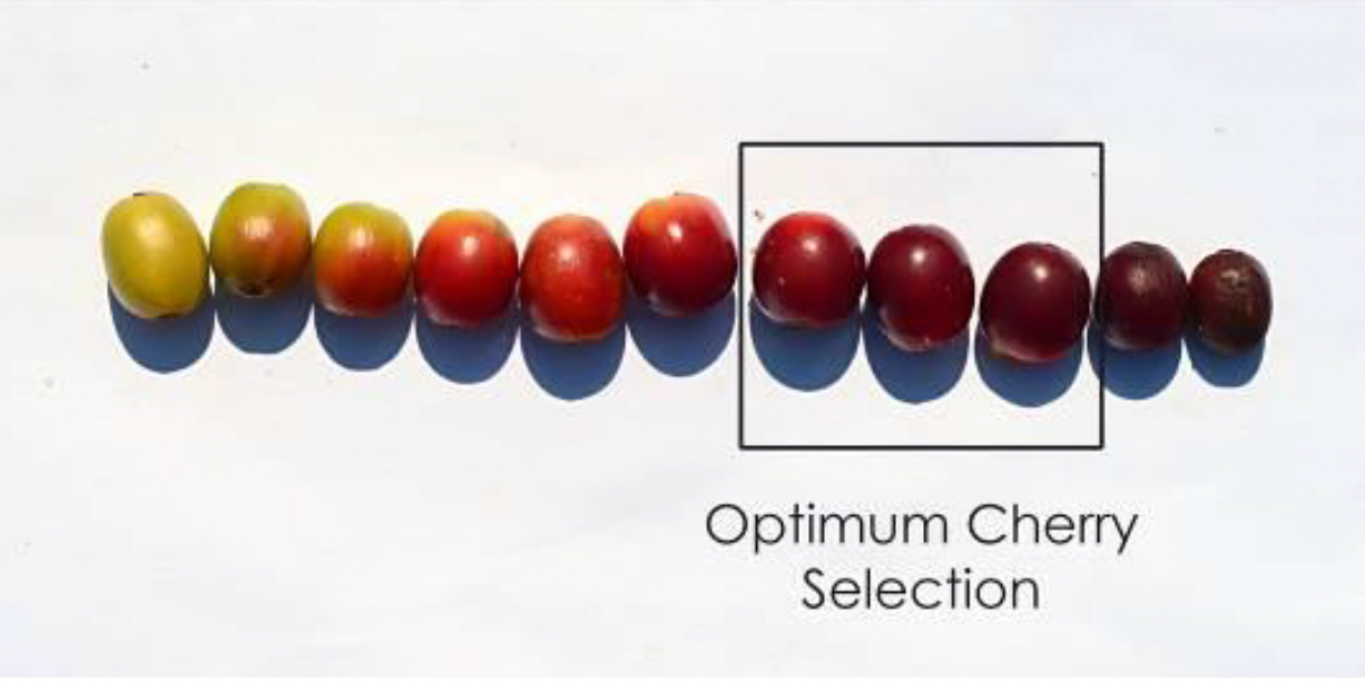 Uniform picking is extremely important for uniform processing because density, water content and sugar content will vary by ripeness. This will affect the later processing and potential quality of the coffee.