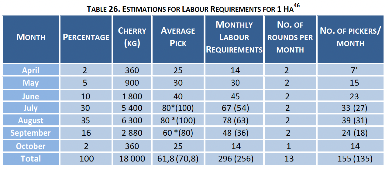 Number of cherries per kilogram: The higher the number of cherries per kg, the greater the potential return per picker per day and the more pickers required per hectare.