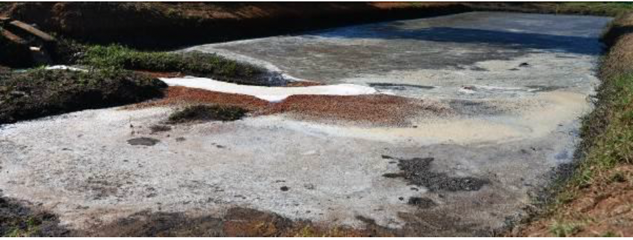 Different materials can be used but a critical factor is using an impervious surface. Common options are concrete or thin layer asphalt. Drying coffee directly on the ground is not recommended because it leads to mould formation and poor sensory attributes. Drying on tarpaulins laid on the ground is not recommended.