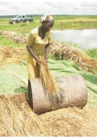 Komabe, pali ukadaulo wapakati wopuntha mpunga womwe ungagwiritsidwe ntchito m'mafamu ang'onoang'ono komanso wotulutsa bwino. Ma thresher awa ndi a semimotor kapena a motor kwathunthu. Izi zilipo kale m'malo angapo kum'mwera kwa Sahara ku Africa, makamaka m'malo othiriridwa kapena malo otsika otukuka.