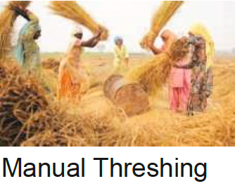 Popuntha pamanja pali njira zingapo. M'malo ena amapuntha pogwiritsa ntchito miyendo poguba pa udzu, ena amamenya udzu pa ng'oma, ena amaika udzu m'matumba ndikuumenya pa tsinde, mwala ndi zina pamene ena amagwiritsa ntchito ndodo kumenya mulu wa udzu wa mpunga. Njirayi ndiyowononga nthawi, yotopetsa, yochedwa ndipo zotulutsa ndizochepa. Kuipitsidwa kwa paddy ndi mchenga, mwala,